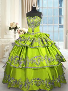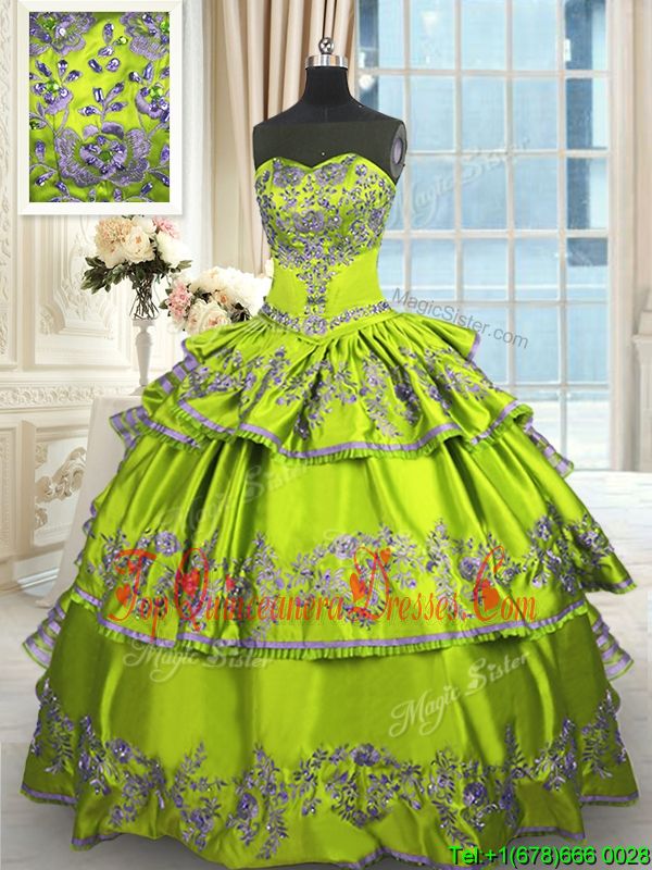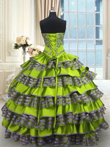 Decent Yellow Green Lace Up Sweet 16 Dresses Embroidery and Ruffled Layers Sleeveless Floor Length