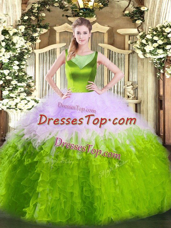 Delicate Ball Gowns Quinceanera Gowns Multi-color Scoop Tulle Sleeveless Floor Length Side Zipper
