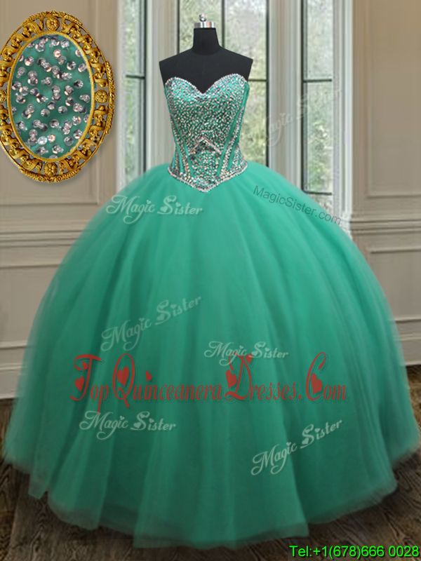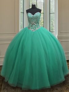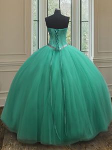 Delicate Ball Gowns Quinceanera Gowns Turquoise Sweetheart Tulle Sleeveless Floor Length Zipper