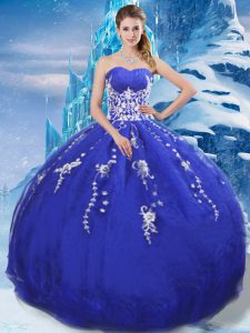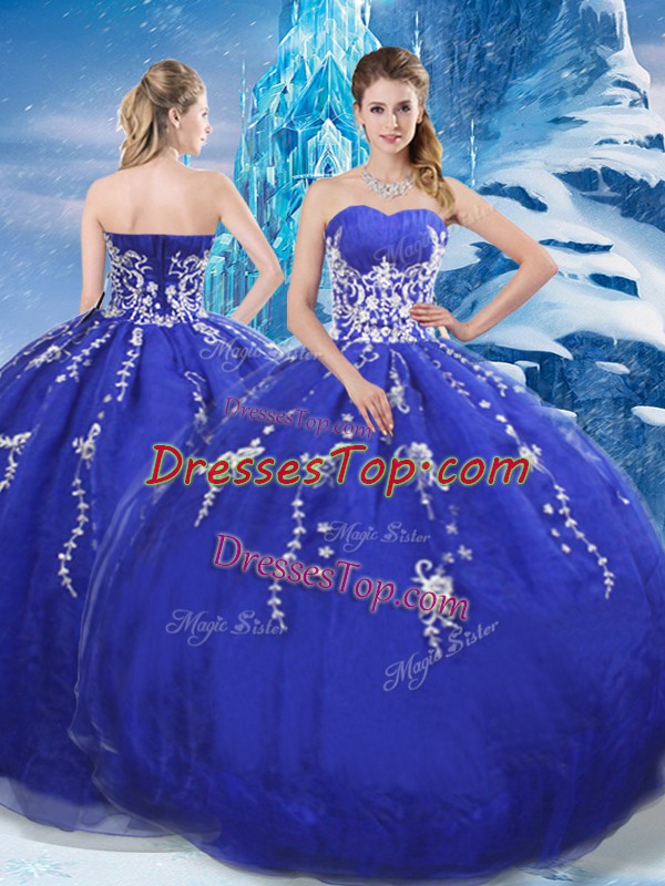 Delicate Blue Sleeveless Appliques Floor Length Sweet 16 Quinceanera Dress