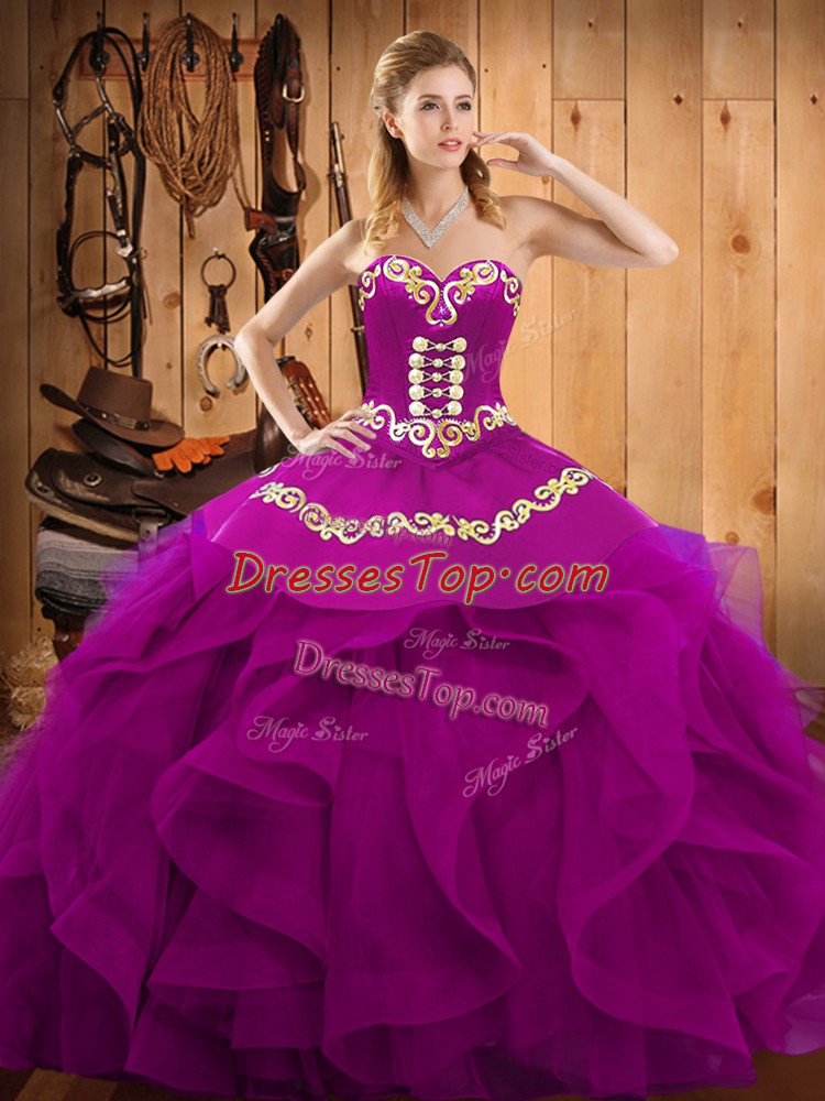 Delicate Floor Length Fuchsia Ball Gown Prom Dress Sweetheart Sleeveless Lace Up