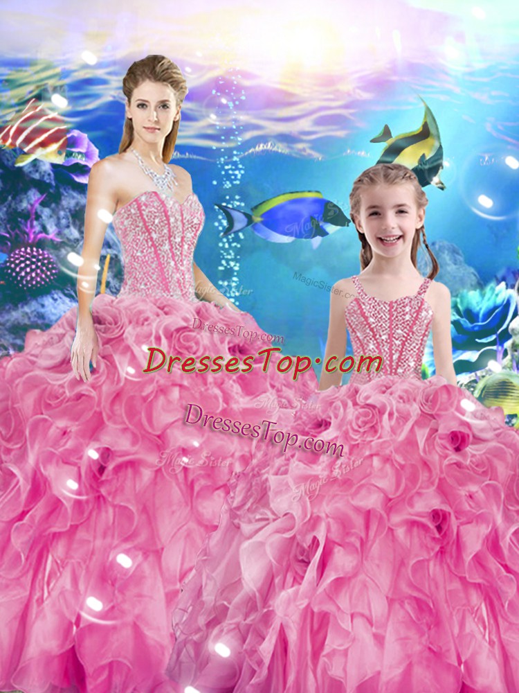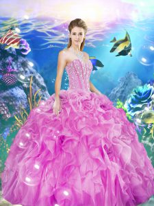 Delicate Floor Length Rose Pink Sweet 16 Dresses Sweetheart Sleeveless Lace Up