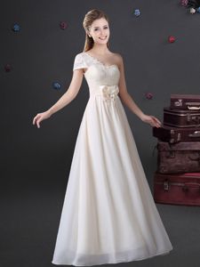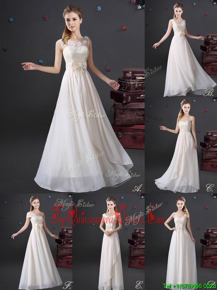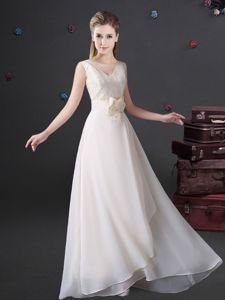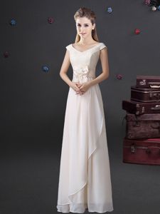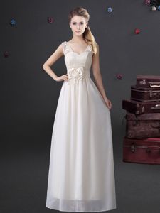 Delicate Floor Length White Damas Dress Chiffon Sleeveless Lace and Appliques and Bowknot
