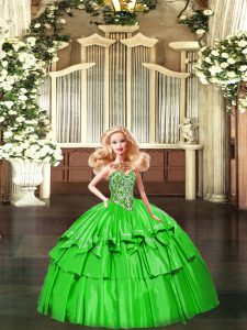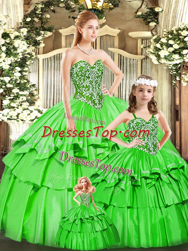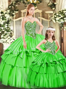 Delicate Green Lace Up Sweetheart Beading and Ruffled Layers Sweet 16 Quinceanera Dress Organza Sleeveless