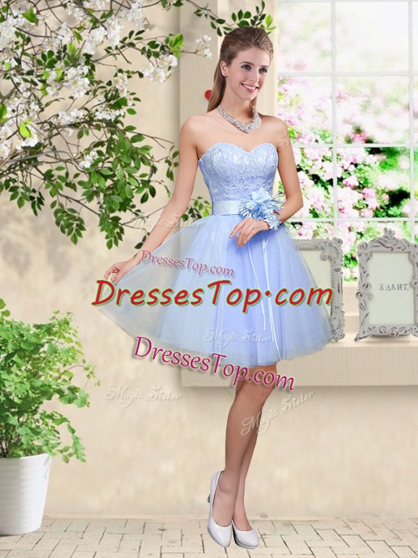 Delicate Lavender Sweetheart Neckline Lace and Belt Dama Dress for Quinceanera Sleeveless Lace Up