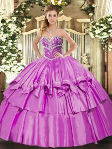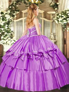 Delicate Lilac Sleeveless Organza and Taffeta Lace Up Sweet 16 Dresses for Military Ball and Sweet 16 and Quinceanera