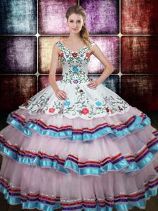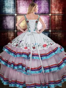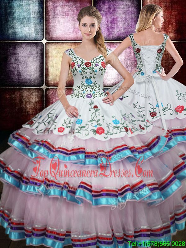 Delicate Multi-color Ball Gowns Straps Sleeveless Taffeta Floor Length Lace Up Beading and Embroidery Quinceanera Gown