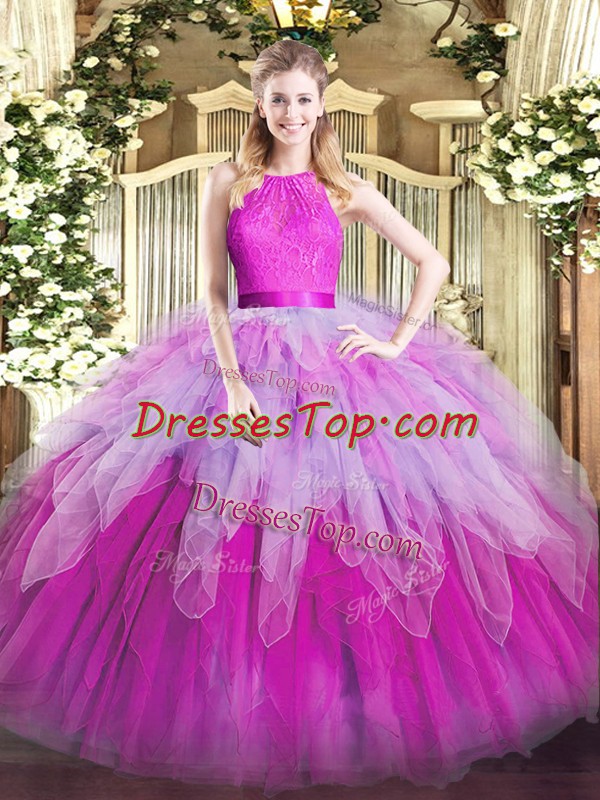 Delicate Multi-color Sleeveless Organza Zipper Quinceanera Dress for Military Ball and Sweet 16 and Quinceanera