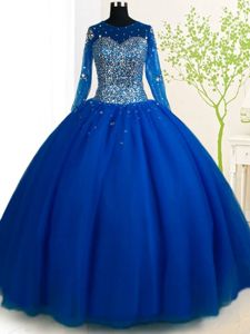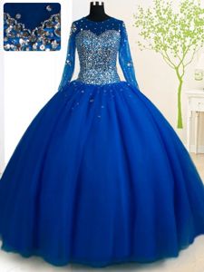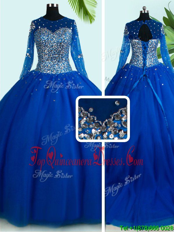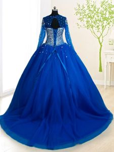 Delicate Scoop Long Sleeves Brush Train Beading Lace Up Quinceanera Gown