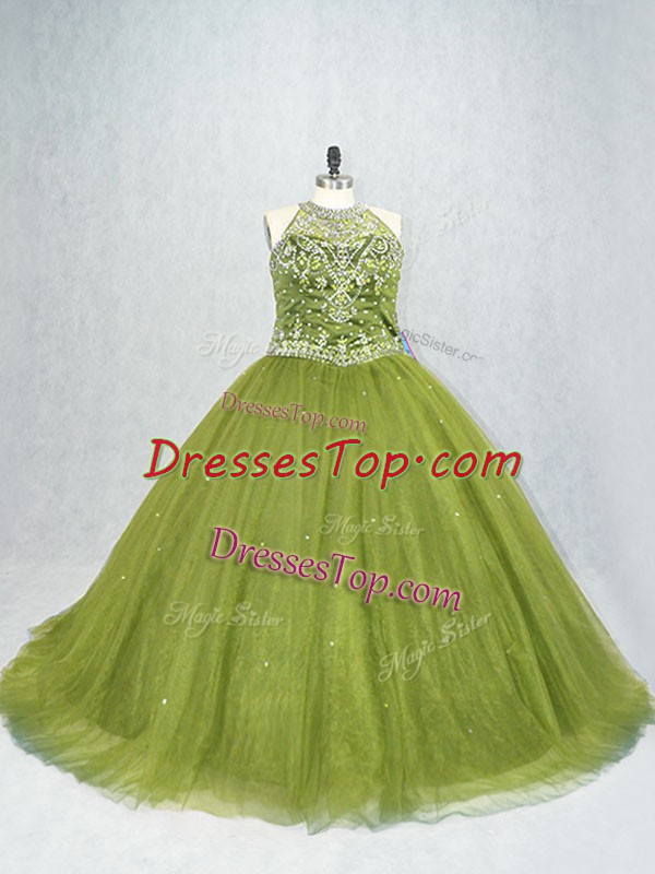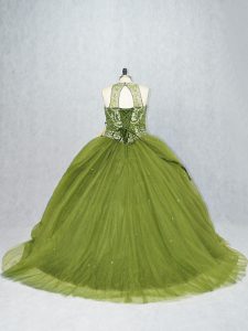 Delicate Tulle Sleeveless Quinceanera Dresses Brush Train and Beading