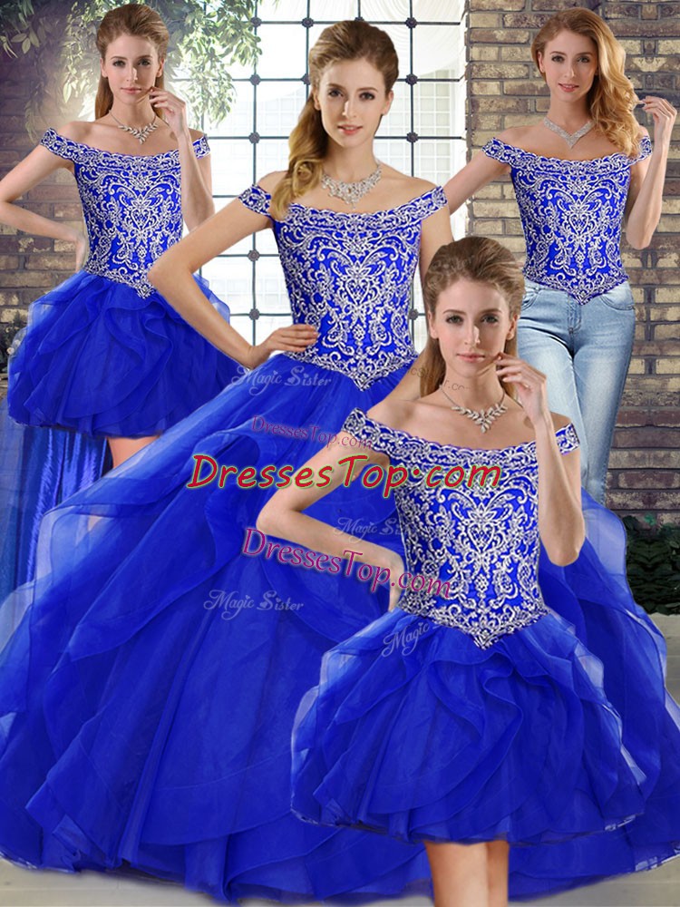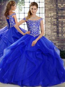 Delicate Tulle Sleeveless Quinceanera Gowns Brush Train and Beading and Ruffles