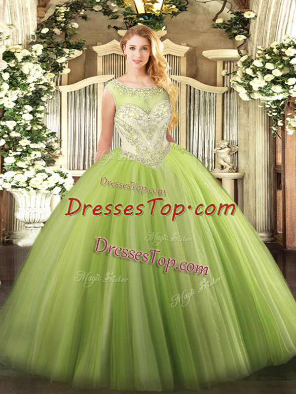 Delicate Yellow Green Ball Gowns Scoop Sleeveless Tulle Floor Length Zipper Beading Sweet 16 Quinceanera Dress