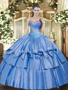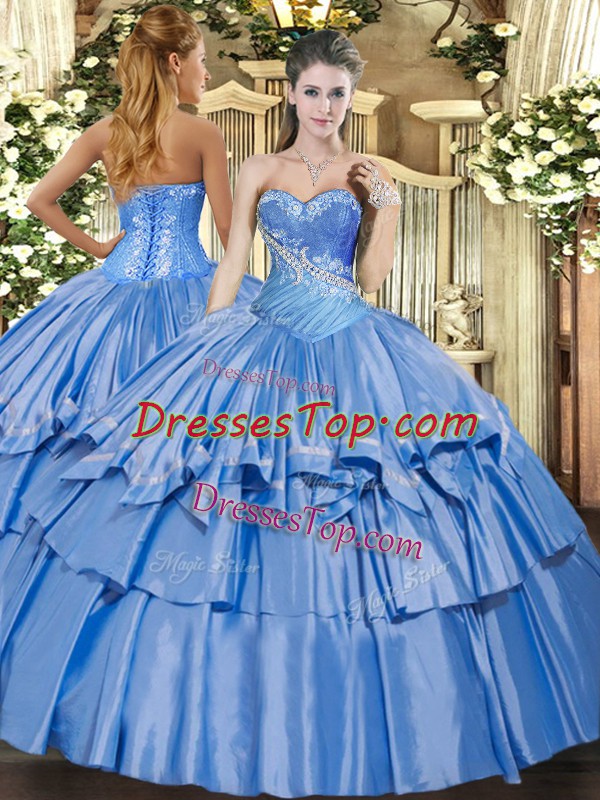 Deluxe Baby Blue Ball Gowns Beading and Ruffles Quinceanera Dresses Lace Up Organza and Taffeta Sleeveless Floor Length