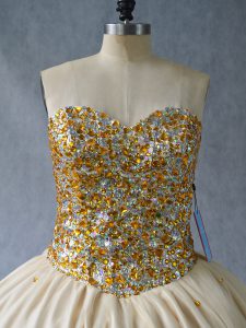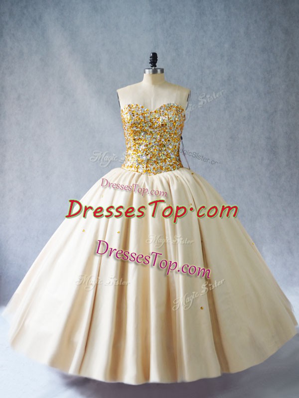 Deluxe Floor Length Ball Gowns Sleeveless Champagne Vestidos de Quinceanera Lace Up