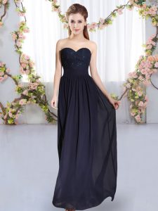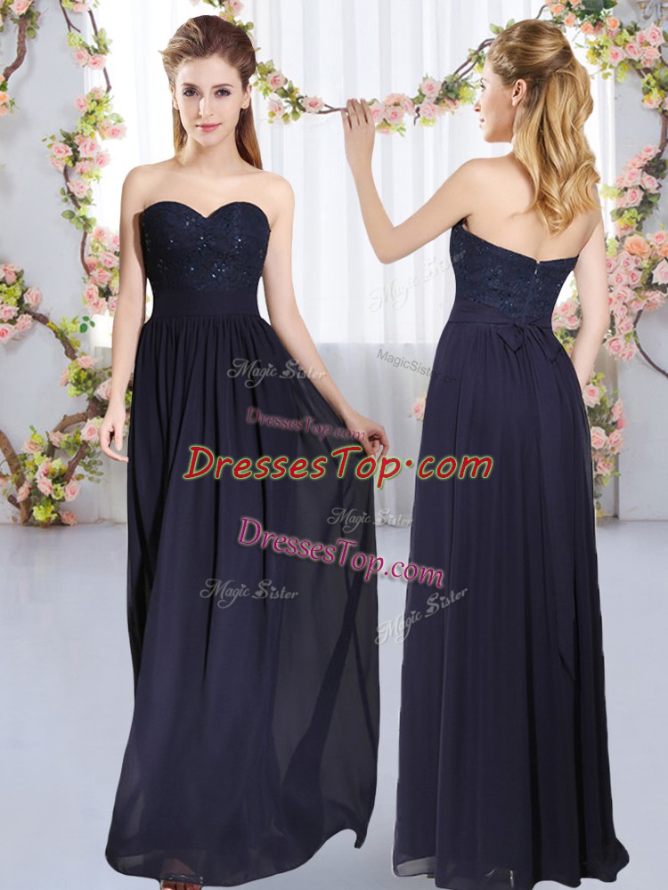 Deluxe Floor Length Empire Sleeveless Navy Blue Quinceanera Court Dresses Zipper