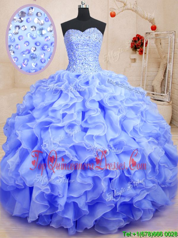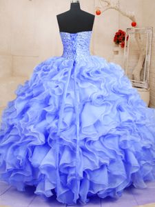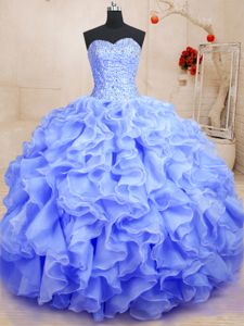 Deluxe Lavender Organza Lace Up Sweetheart Sleeveless Floor Length Vestidos de Quinceanera Beading and Ruffles