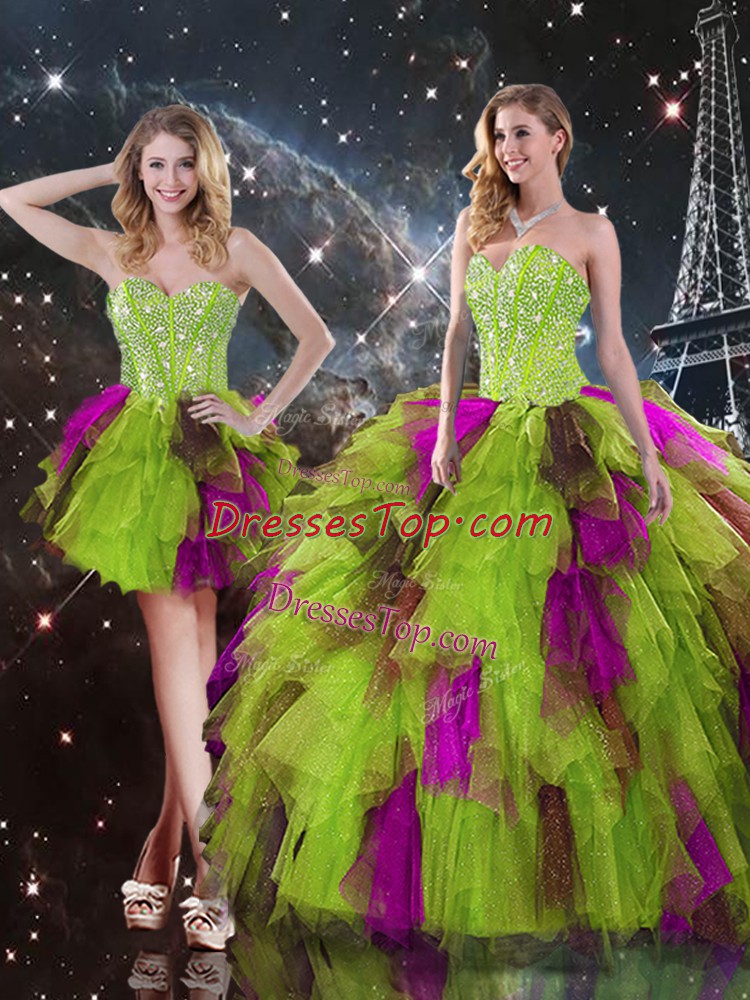 Deluxe Multi-color Sweetheart Neckline Ruffles Quinceanera Dress Sleeveless Lace Up