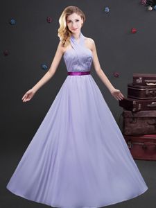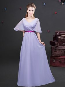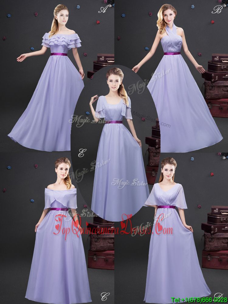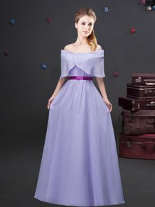 Deluxe Off the Shoulder Ruffled Lavender Sleeveless Chiffon Zipper Court Dresses for Sweet 16 for Prom and Party and Wedding Party