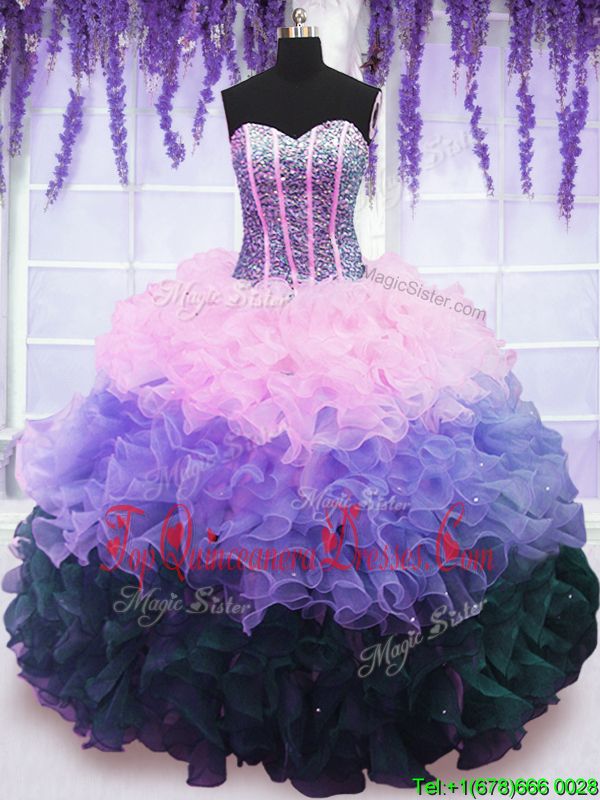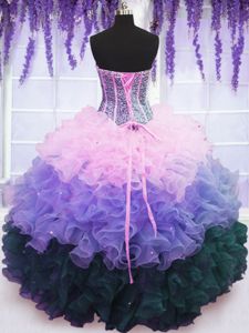 Deluxe Ruffled Sweetheart Sleeveless Lace Up 15 Quinceanera Dress Multi-color Organza