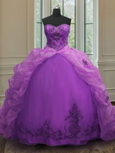 Deluxe Ruffled With Train Orange Quinceanera Dresses Sweetheart Sleeveless Sweep Train Lace Up