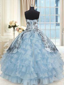 Deluxe Sweetheart Sleeveless Organza and Taffeta Ball Gown Prom Dress Beading and Embroidery and Ruffled Layers Lace Up
