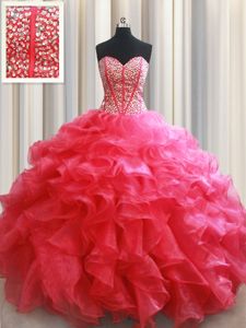 Deluxe Sweetheart Sleeveless Organza Sweet 16 Dress Beading and Ruffles Lace Up