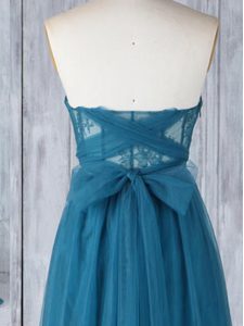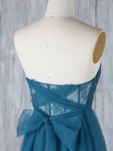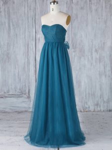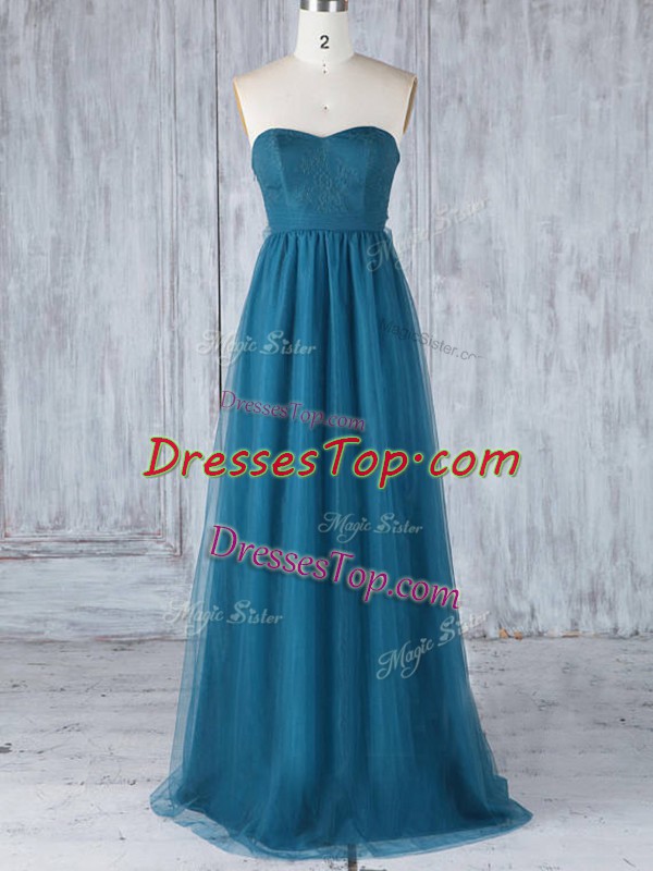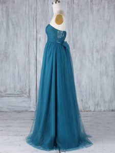 Deluxe Teal Sleeveless Floor Length Appliques Side Zipper Damas Dress