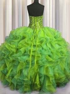 Deluxe Visible Boning Beaded Bodice Multi-color Sleeveless Organza Lace Up Vestidos de Quinceanera for Military Ball and Sweet 16 and Quinceanera