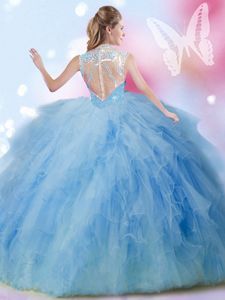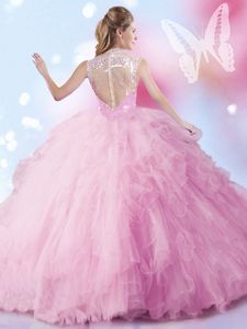 Designer Baby Pink Ball Gowns Beading and Ruffles and Sequins Vestidos de Quinceanera Zipper Tulle Sleeveless Floor Length