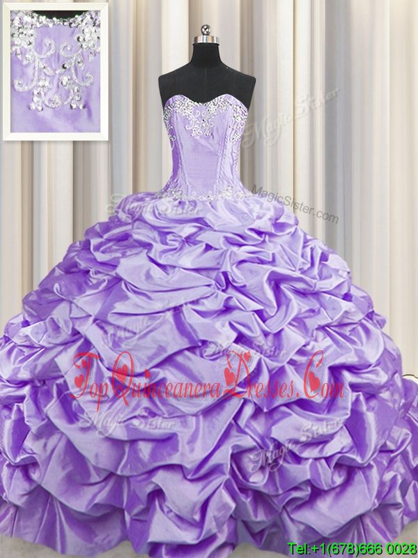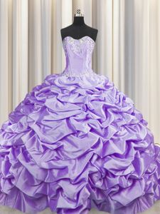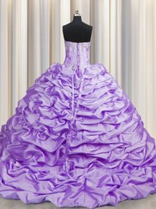 Designer Brush Train With Train Lavender Quinceanera Gown Taffeta Sweep Train Sleeveless Beading and Pick Ups