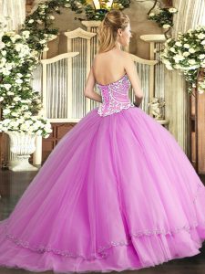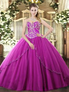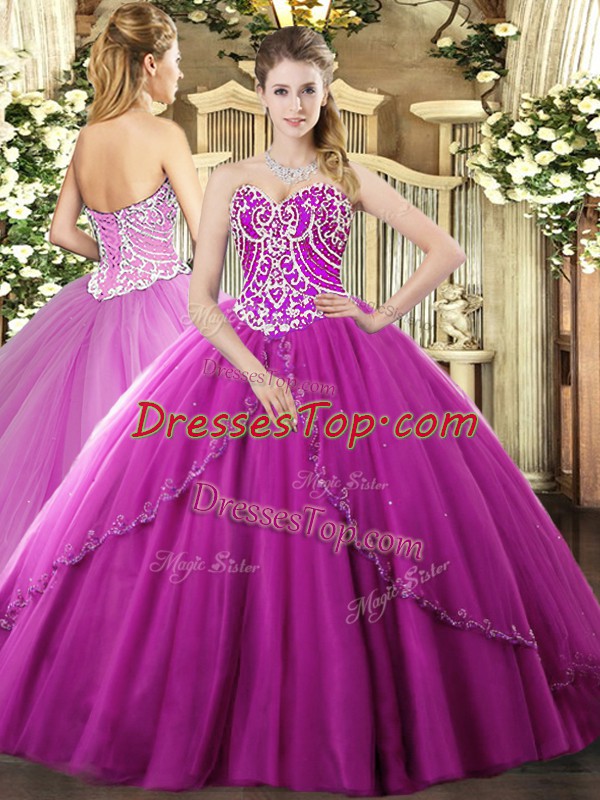 Designer Fuchsia Ball Gowns Tulle Sweetheart Sleeveless Beading Lace Up Quinceanera Dresses Brush Train
