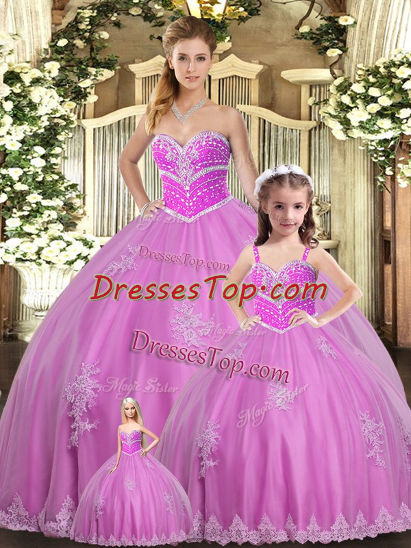 Designer Lilac Sleeveless Tulle Lace Up 15 Quinceanera Dress for Sweet 16 and Quinceanera
