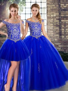 Designer Sleeveless Floor Length Beading Lace Up Sweet 16 Quinceanera Dress with Royal Blue