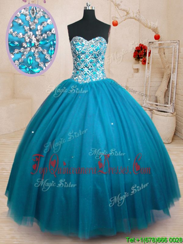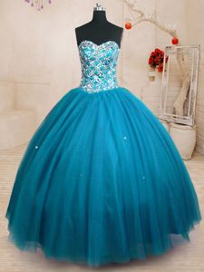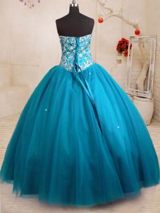 Designer Sweetheart Sleeveless Lace Up Quinceanera Gowns Teal Tulle
