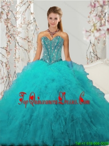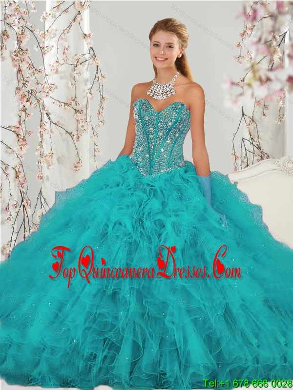 Detachable and Elegant 2015 Top Seller Beading and Ruffles Sweet 15 Dresses in Turquoise