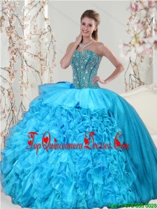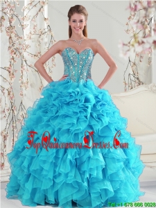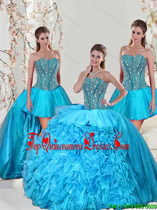 Detachable and Elegant Aqua Blue Sweet 15 Dresses with Beading and Ruffles for 2015
