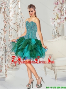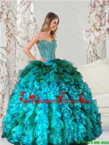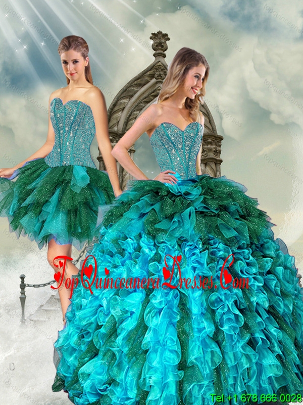 Detachable and Fashionable Multi Color Beading and Ruffles Sweet 15 Dresses for 2015