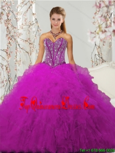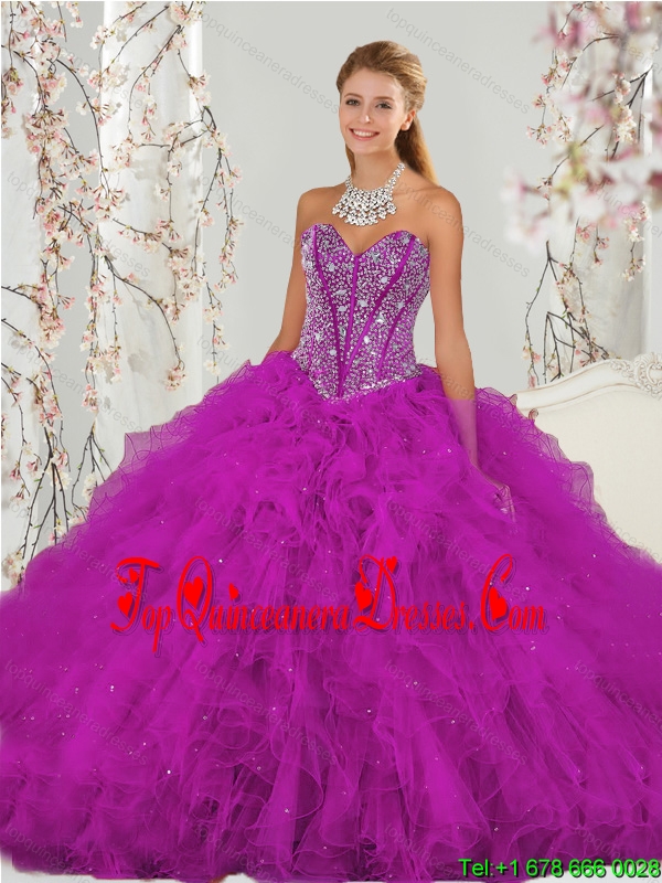 Detachable and Luxurious Beading and Ruffles Fuchsia Sweet 16 Dresses