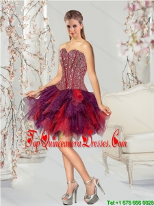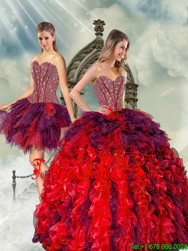 Detachable Beading and Ruffles Multi-color Quince Dresses for 2015