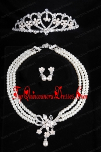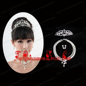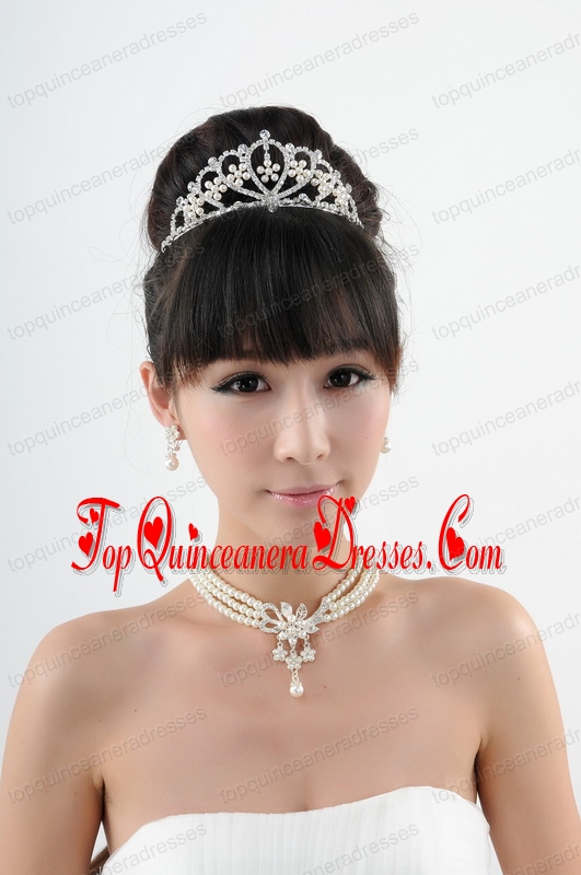 Dignified Crown with Wedding Jewelry Set Including Necklace And Earring