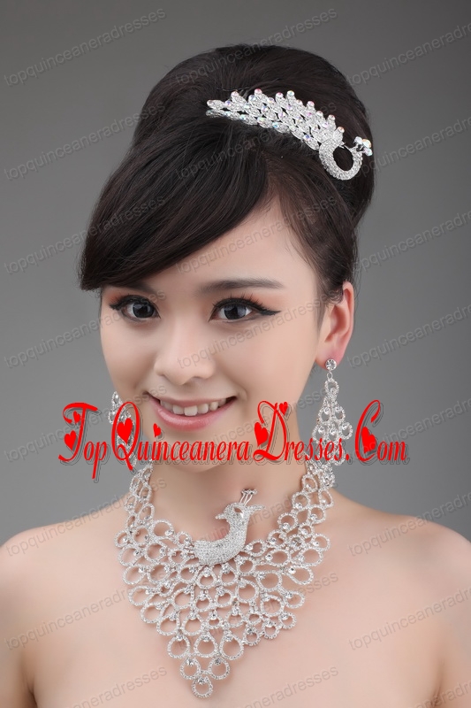 Dignified Jewelry Set Including Necklace Crown And Earrings In Phoenix Shape