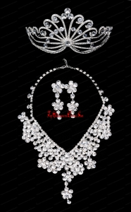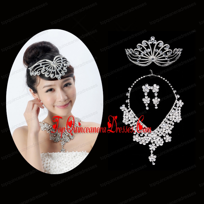 Dignified Rhinestone DreamlikeJewelry Set Including Necklace Tiara