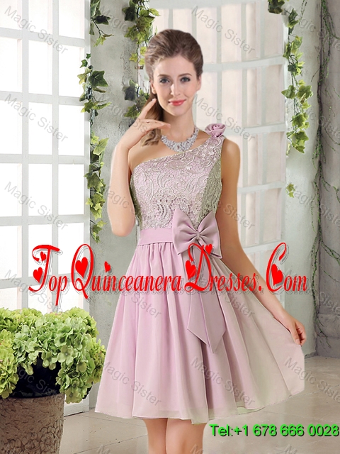 Discount A Line One Shoulder Pink Dama Dresses with Bowknot