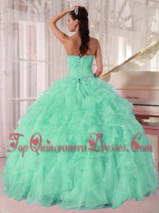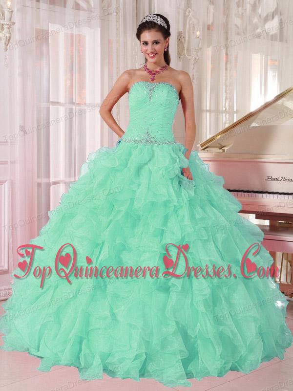 Discount Aqua Blue Ball Gown Strapless Ruching Organza Beading Popular Quinceanera Gowns