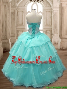 Discount Beaded and Ruffled Layers Quinceanera Dress in Aqua Blue for Spring