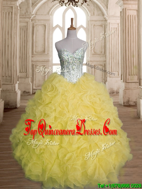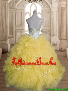 Discount Beaded and Ruffled Organza Quinceanera Dress in Yellow