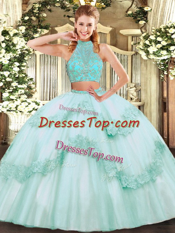Discount Beading and Appliques and Ruffles 15th Birthday Dress Apple Green Criss Cross Sleeveless Floor Length