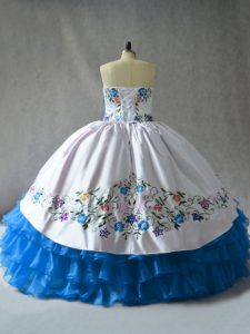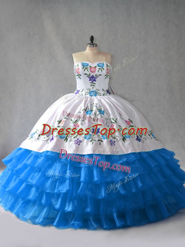 Discount Blue And White Sleeveless Organza Lace Up Ball Gown Prom Dress for Sweet 16 and Quinceanera