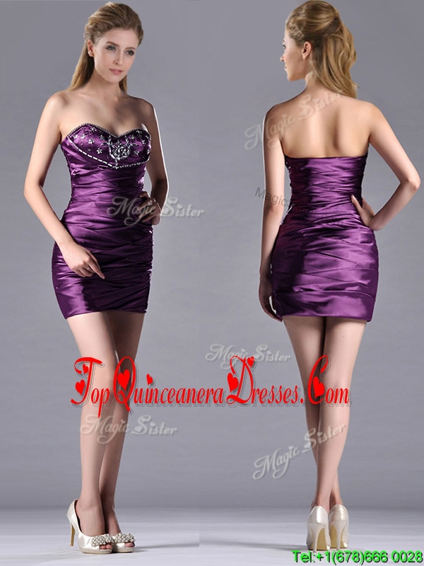 Discount Column Beaded Bust and Ruched Dama Dress in Dark Purple