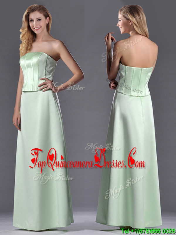 Discount Column Ruching Satin Dama Dress with Strapless
